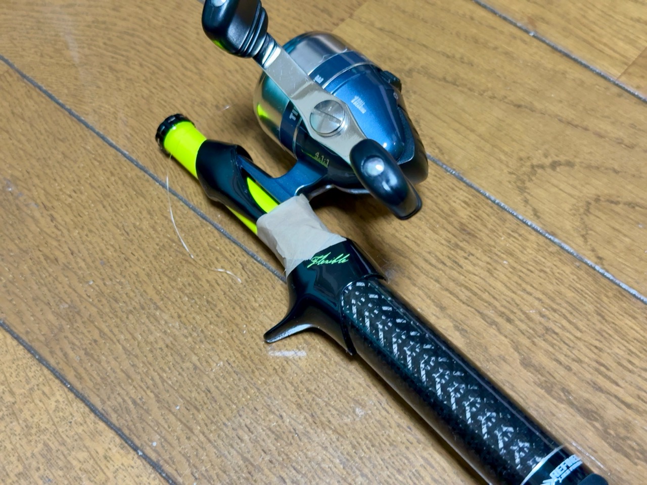 結果としてタイニーライトを使うさいはグリップとリールフットをテープで巻いて使うパターンになってます。何となくネオスタイル。ロッドは1本も持ってないですけど。見た目はかなり良くないです。