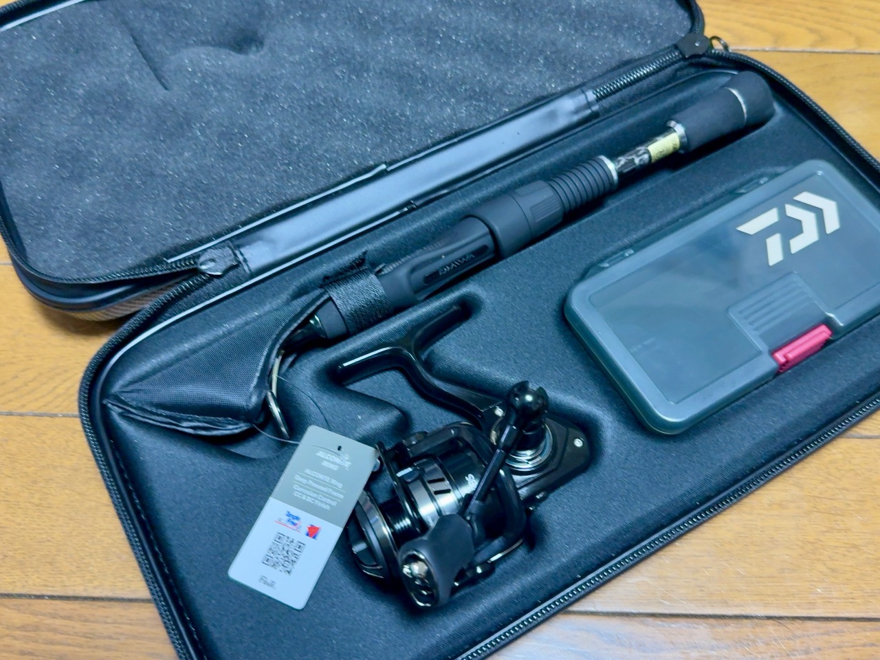 ケースだけ見たら若干カーボンプリントは安っぽいものの、ハイエンドのロッドを収納するケースのような印象は受けますね。なんとなくミッションインポシブル感あるなー。トムクルーズに使って欲しいです。