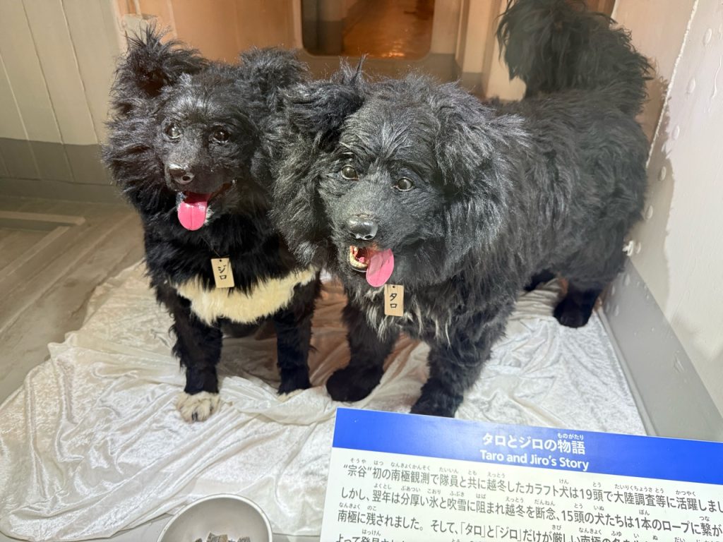 南極物語で有名なタロとジロ。やむなく置いてかれちゃった樺太犬のタロとジロも船内におります。