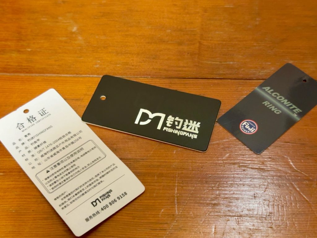 厚手のナイロンの竿袋。そこそこしっかりしたケースが付いて来たんでちょっとびっくりしました。ロゴとかは相変わらず向こうのロッドなのでダサいと思っています。達筆な感じの漢字プリントね。