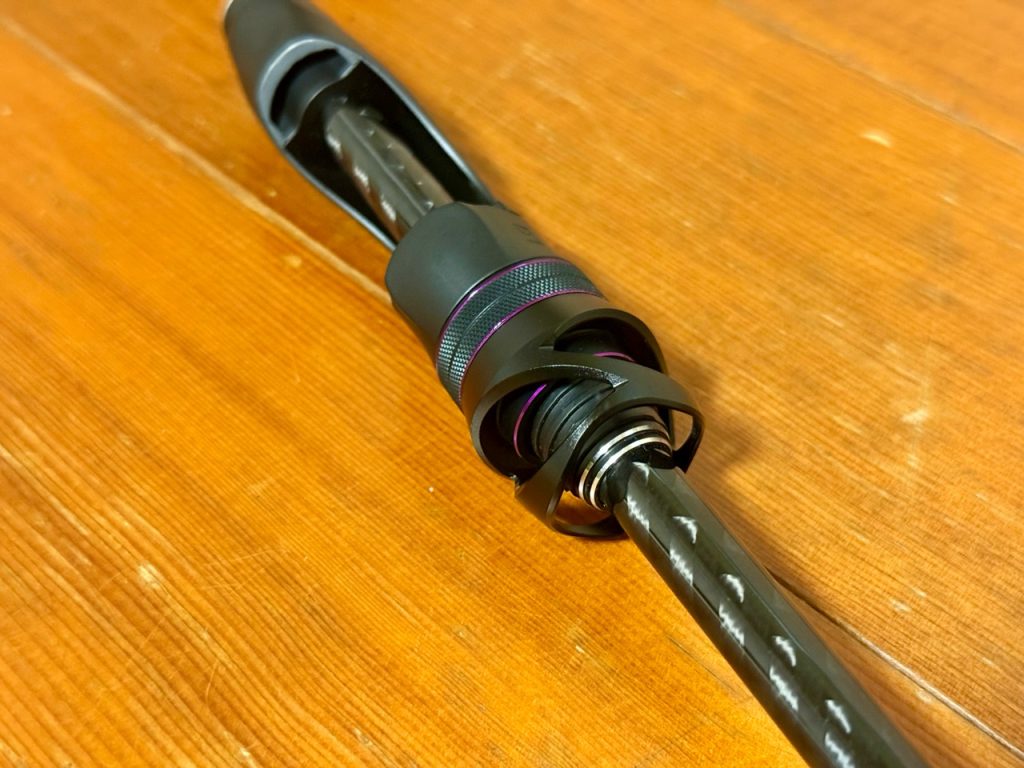 リールシートはブリッジライクシートみたいな感じになってます。ソアレとかに付いてるやつね。素材はエンジニアプラスチックみたいな感じ。