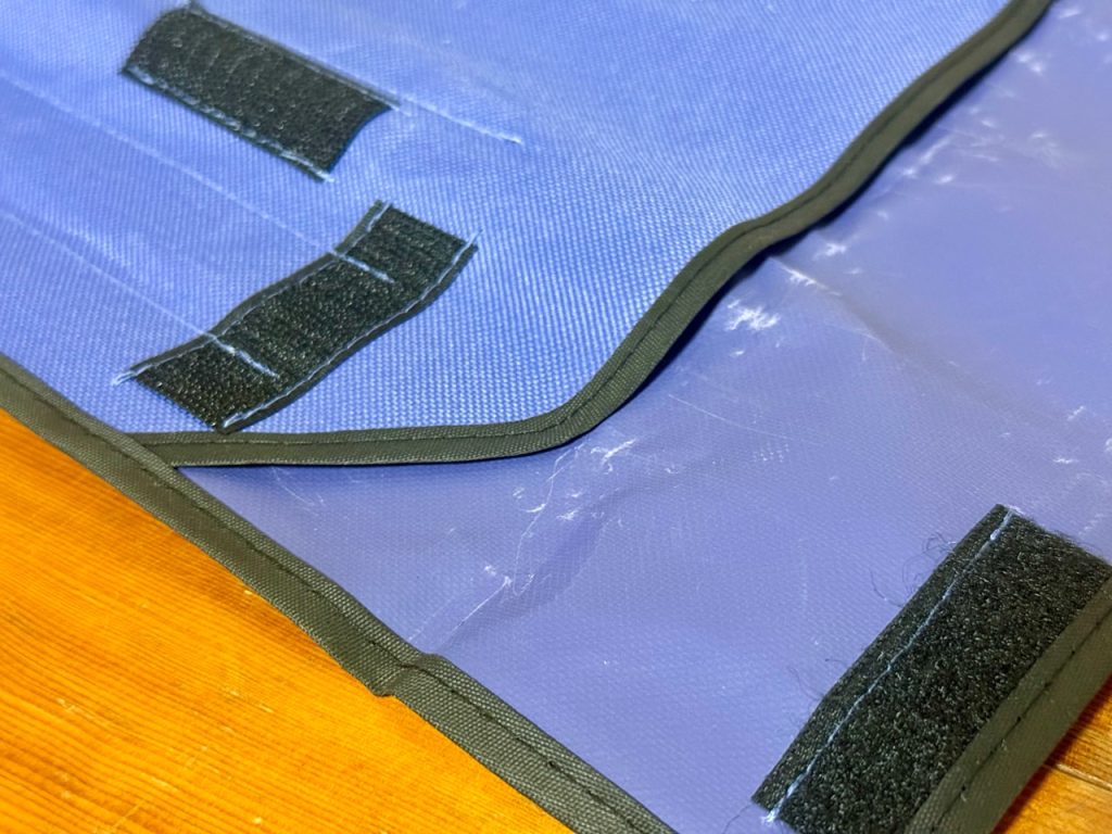 固めの素材で内側は撥水しそうな加工がされています。結果として若干跡がつきやすい感じに。
