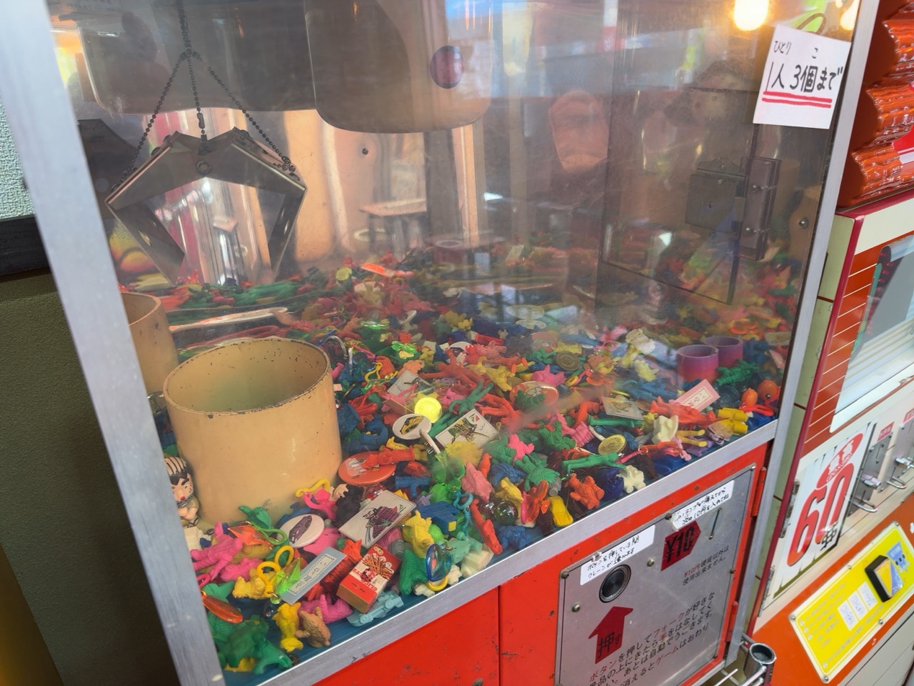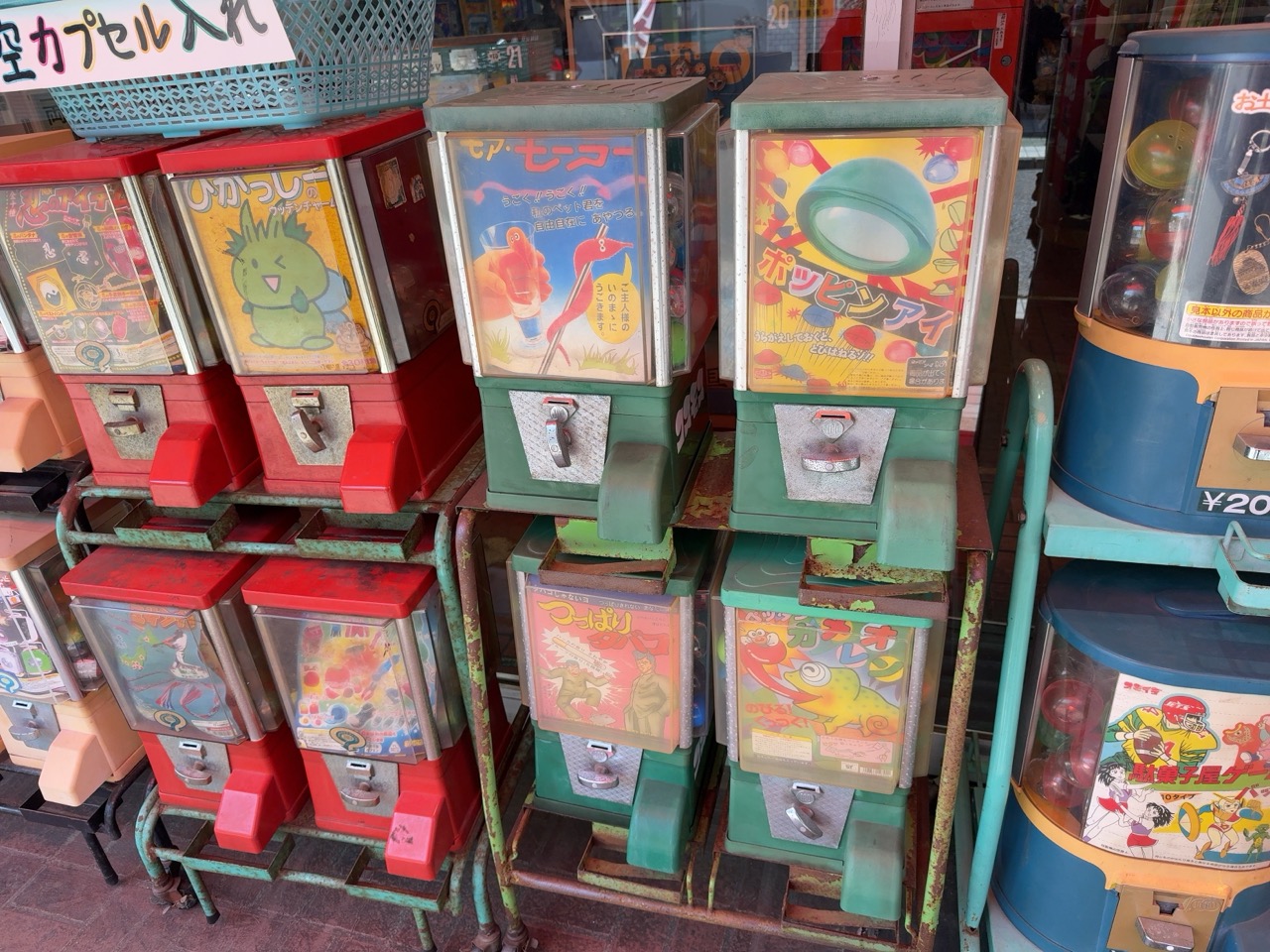 お店の前にも昭和なガチャが置いてあります。ガチャガチャ専門店が増えましたが本来のガチャガチャはこういうスタイルが正解。