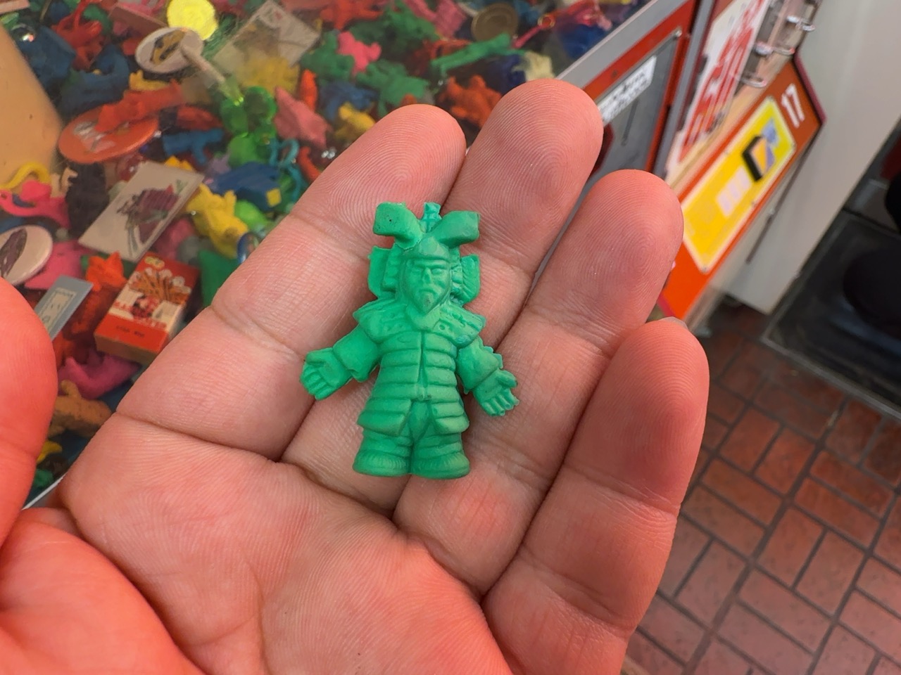取れたのは謎な武者の消しゴム。今これ作ってるのかな?すげー昭和っぽい景品ですがどう使うのが正解なのかは不明です。消しゴムとして使うと多分黒くのこるパターンだろうし。