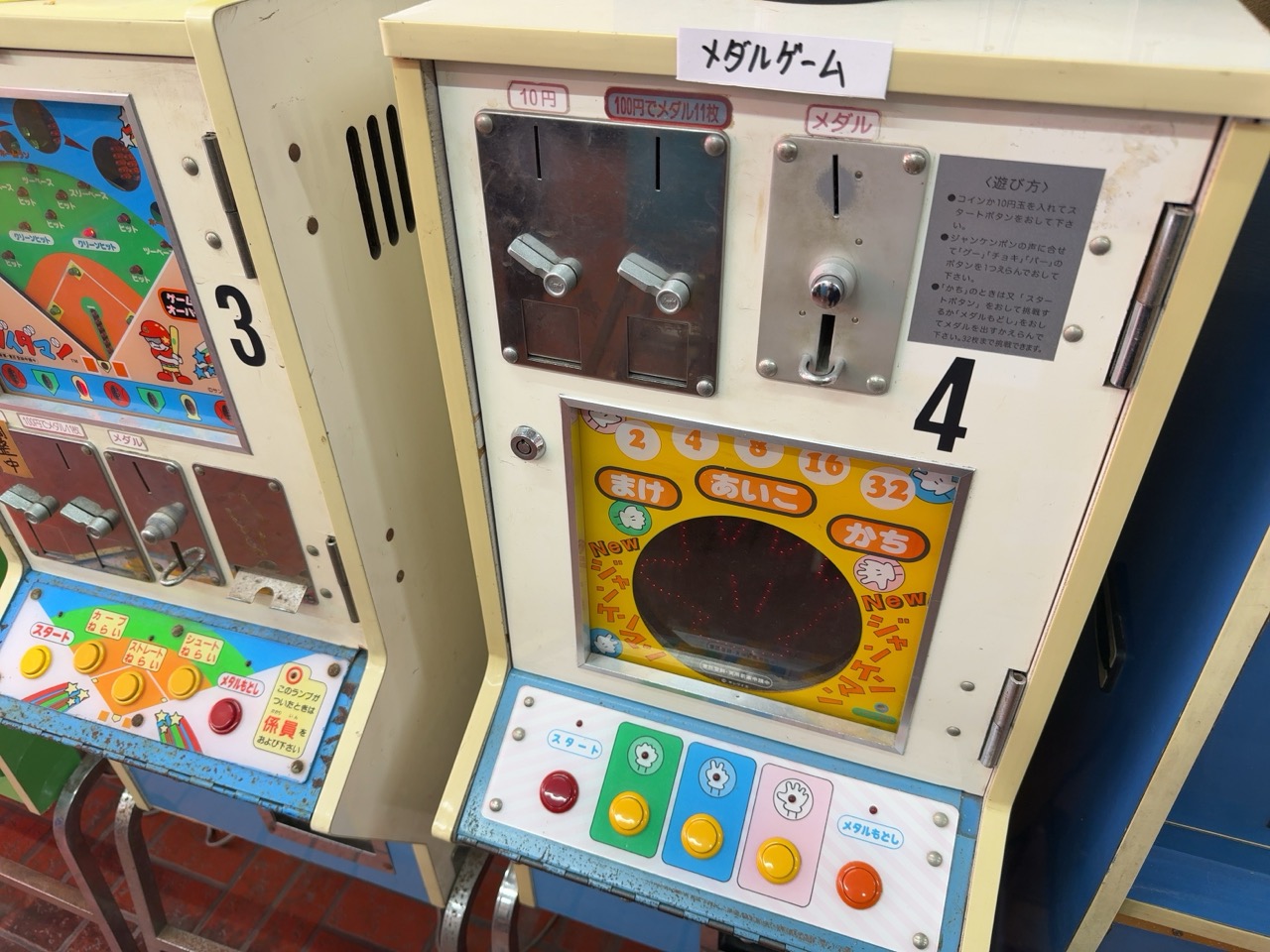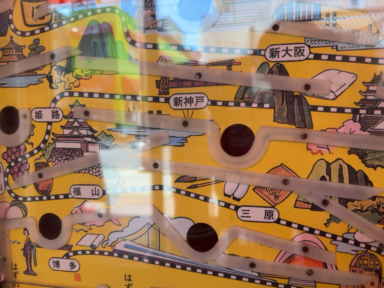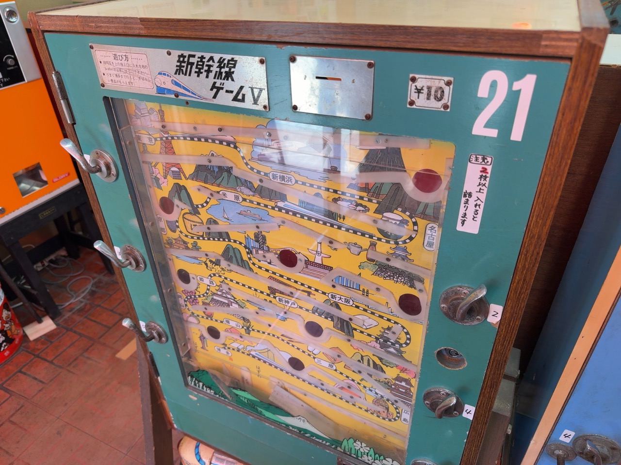 そんな駅からすぐの商店街にあるお店、思い出商店。ここで昔デパートの屋上とかにあるゲームコーナーで遊べたようなレトロなコインゲームが置いてあって遊べちゃいます。開店日が基本は土曜日なのでwebサイトをチェックしておくと良いと思います。
