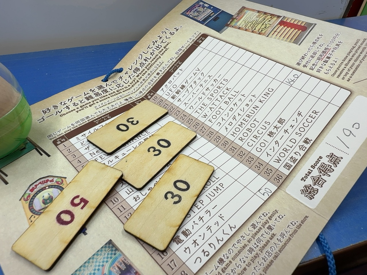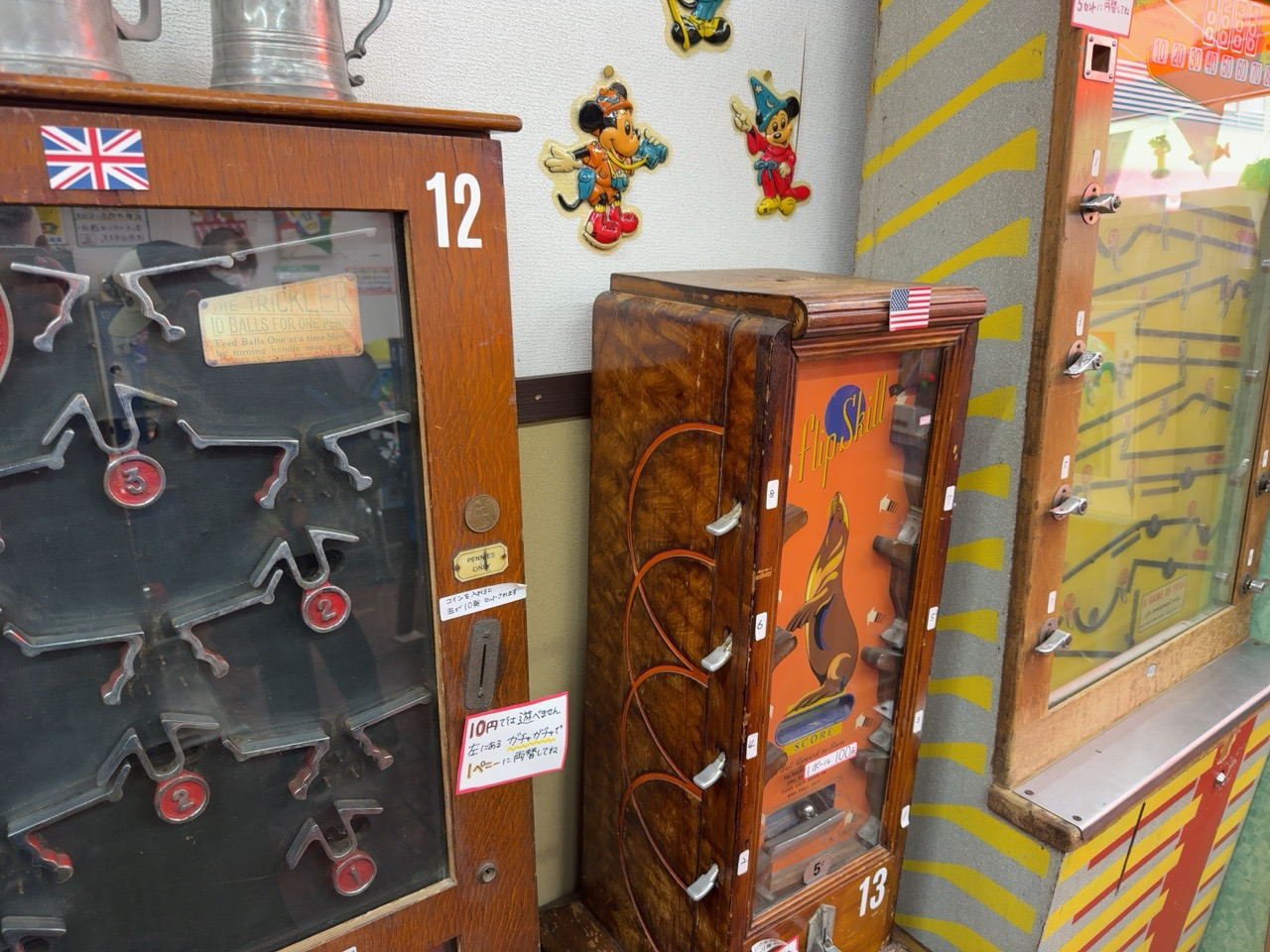 イギリスとアメリカの海外製コインゲームもありました。これはなかなか遊ぶ機会がないので貴重でした。日本だと10円を使うわけですが1ペニー、1セントを使うゲームです。硬貨を弾いて飛ばすのは日本のゲームと一緒。チーンっていうベルのシンプルな音が響きます。