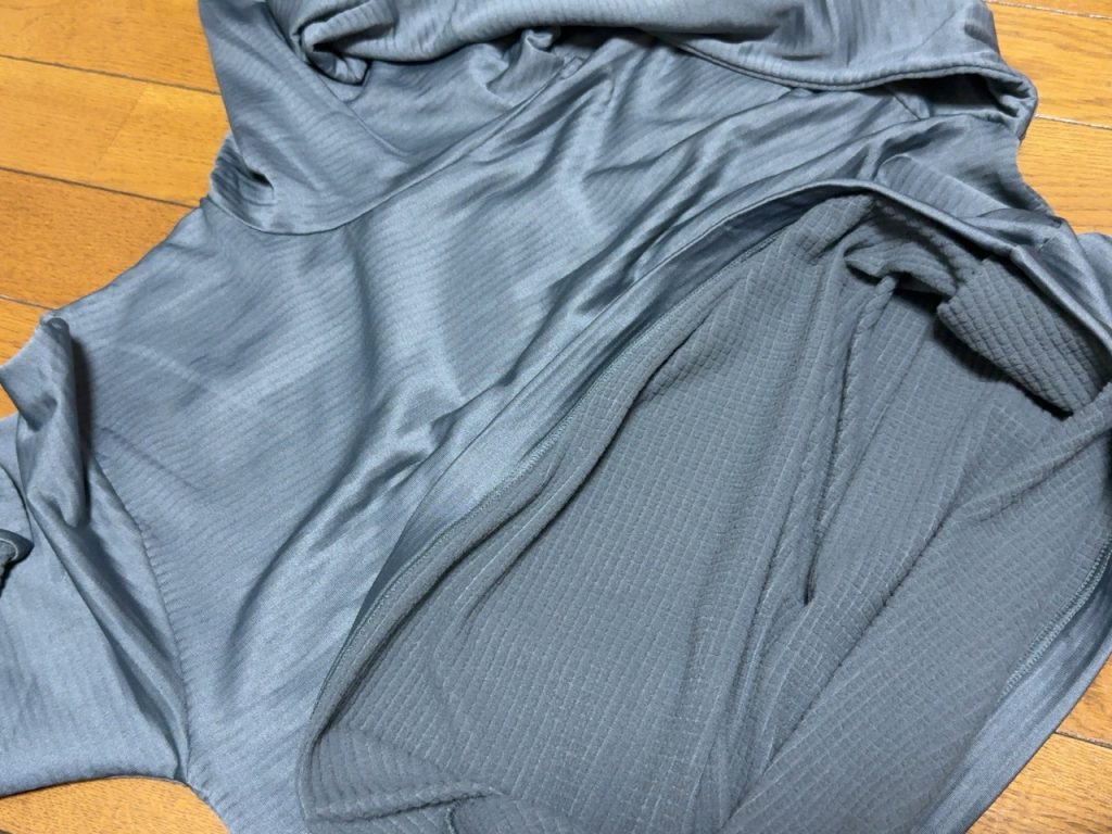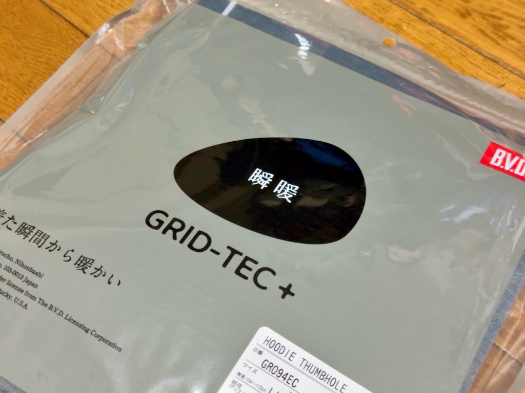 BVDから発売されてる瞬暖GRID-TEC+シリーズ。タートルネックやハイネック、クルーネックにスパッツ系まで下着メーカーだけありラインナップも何種類かあります。今回僕が買ったのはfishingstlyeのフーディータイプ。
