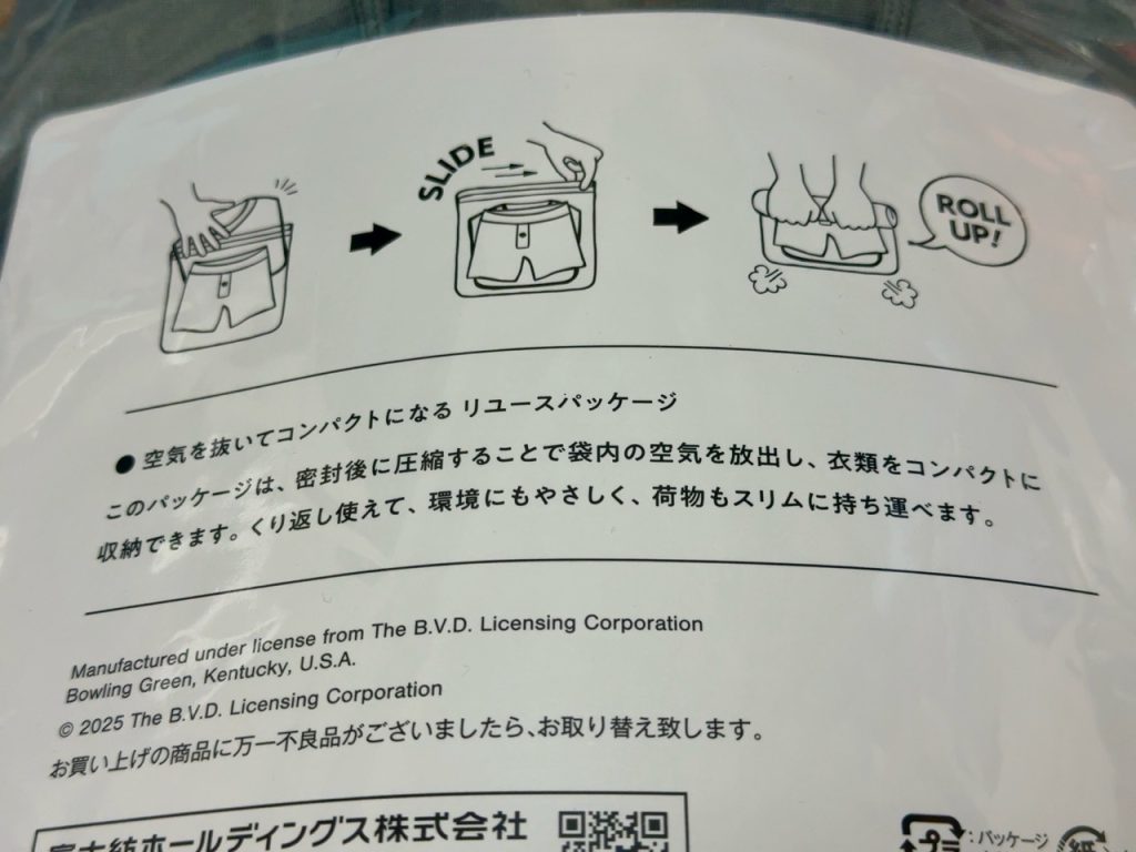 なにげにパッケージが圧縮袋になっているのはすごく便利。圧縮袋は旅行の際の必需品です。他のメーカーさんも真似してくれたら良いのに。