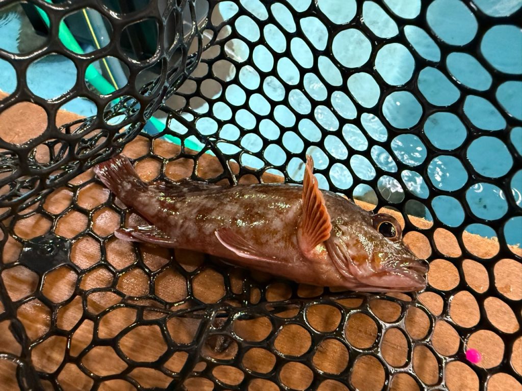 目の前にエサを落として軽くピッと動かすとすぐに反応がかえってきます。カサゴはやはり釣り人にとっての心の共だなと思います。