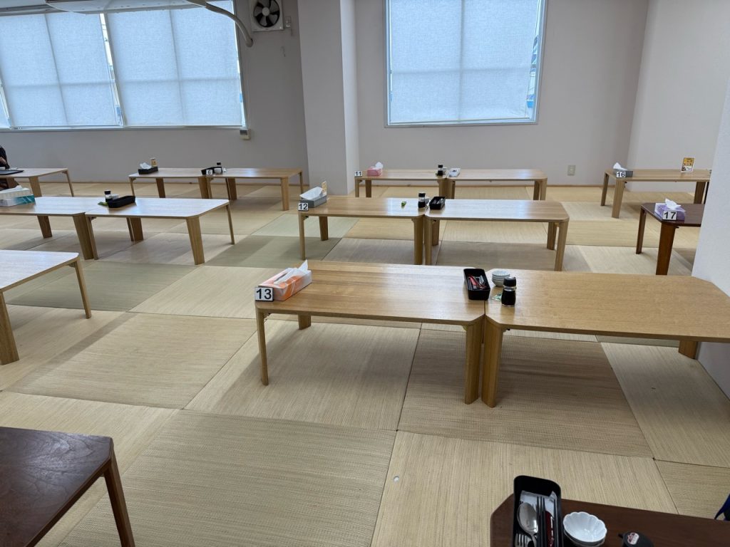 2Fの食堂で先ほど釣った魚を食べる方ができます。入場時の番号札と釣った魚を紐付けてるので取り間違えもないかと。