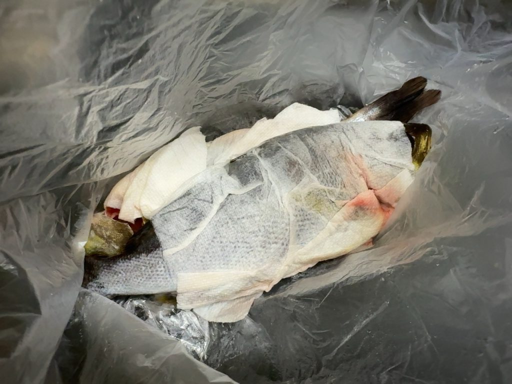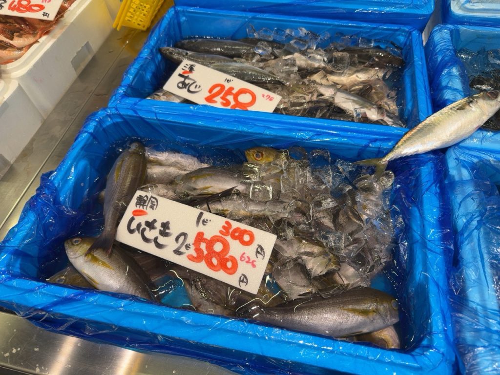調理をお願いせずに持ち帰りの場合は下処理を済ませた状態で簡易クーラーに入れて渡してくれます。スゲー便利。イサキは骨強めで皮厚めなんで慣れてない人でも3枚に下ろしやすい魚じゃないかと思います。